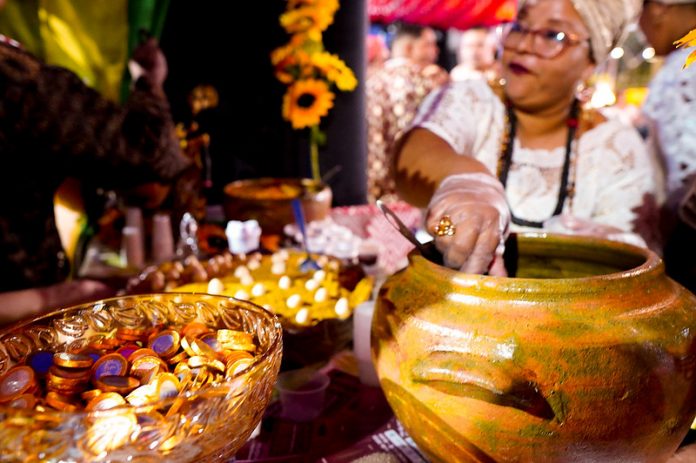 “Xangô é o senhor da justiça, dos trovões e das pedreiras, seu elemento é o fogo e as cores da indumentária são vermelho, branco e marrom. A comida de santo é um alimento produzido de forma ritualística nos terreiros das religiões de matriz afro-brasileira. Quem cozinha é a Yabasse e são conhecidas como comidas de Axé”, explicou a pesquisadora Carmem Lélis, da Prefeitura do Recife.
