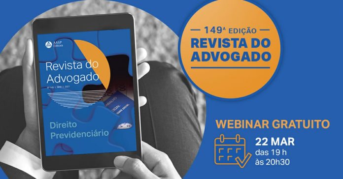 A Associação dos Advogados (AASP) lançará a primeira edição do ano da Revista do Advogado com um webinar gratuito, no dia 22 de março, às 19h. À frente do projeto, o professor de Direito Previdenciário da PUC/SP, Wagner Balera, estará interagindo com o público em evento 100% on-line, pela plataforma Zoom.