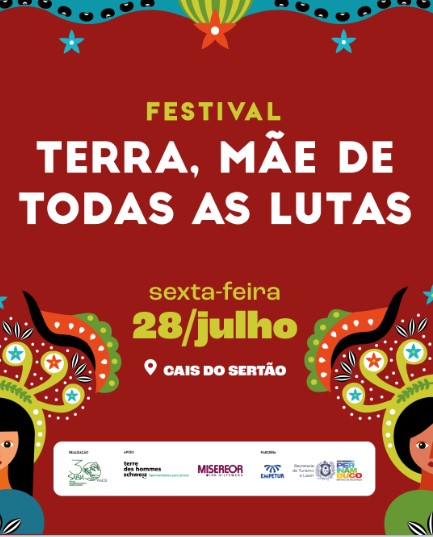 Portanto e por mais voos que faz dessa instituição referência nas suas lutas e trabalho, celebramos saudando a Terra, Mãe de todas as Lutas. O Festival que vem do Sertão ao Cais do Recife, culmina no Museu do Cais do Sertão, a partir das 17h, desta -sexta-feira (28), depois de passar, além de Triunfo, pelo Agreste (dia 15, em Caruaru) e Zona da Mata Sul (dia 21 em Tamandaré).