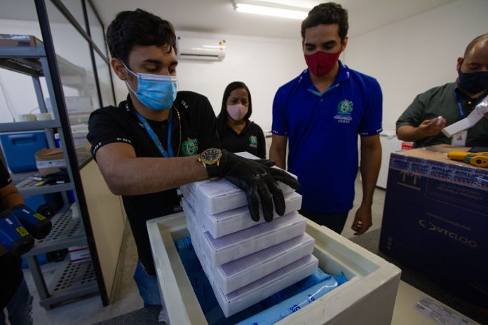 A logística de distribuição para as 12 sedes das Gerências Regionais de Saúde (Geres) será iniciada na manhã desta quinta-feira (27.05). Com a descentralização do acesso às vacinas da Pfizer, anunciado de forma pioneira pela Secretaria Estadual de Saúde (SES-PE) no último dia 18 de maio, todos os municípios receberão doses para beneficiar a população de gestantes e mulheres que tiveram seus bebês nos últimos 45 dias. Com a chegada desse quarto lote, Pernambuco já totaliza o recebimento de 115.830 doses da Pfizer/BioNTech, vacina que possui especificidades em seu armazenamento, o que exige um diferencial no planejamento do transporte e do armazenamento.