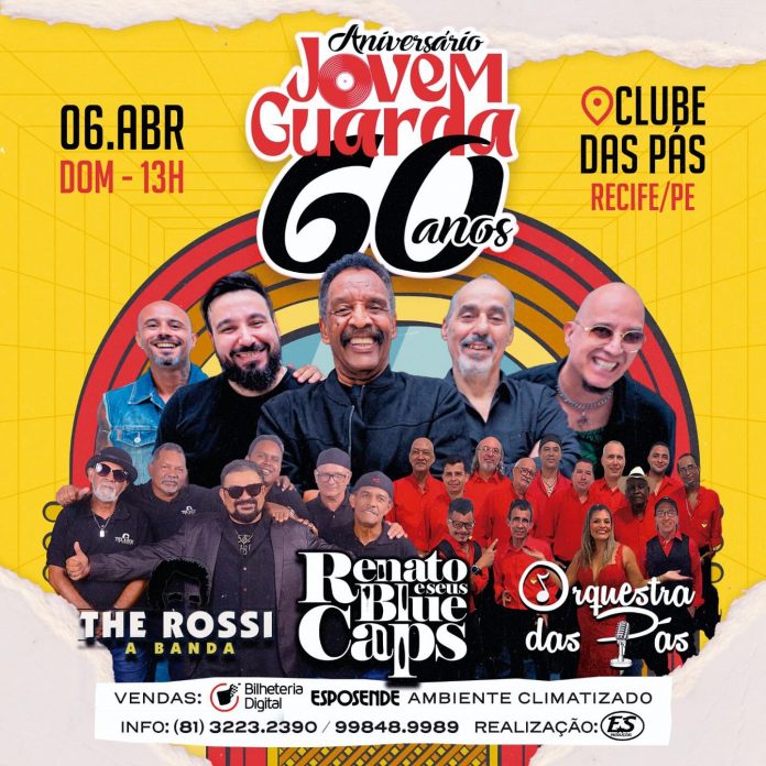 O Clube das Pás apresenta neste domingo (6), os “60 anos da Jovem Guarda”. A festa, especialmente para aqueles saudosos da música romântica de outras épocas, promete levar o público em uma viagem aos anos 60 com grandes consagrados clássicos.