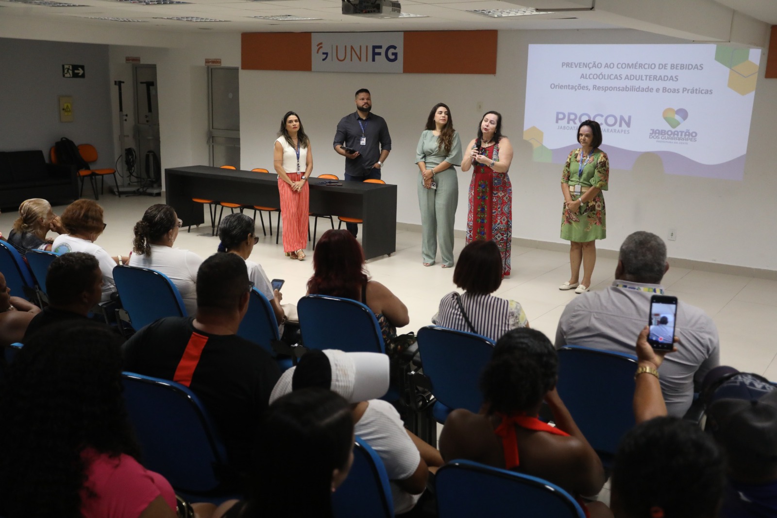 A Prefeitura do Jaboatão dos Guararapes promoveu, nesta quinta-feira (16), uma capacitação voltada para comerciantes das praias de Piedade e Candeias, com o objetivo de orientar sobre os riscos da comercialização de bebidas alcoólicas adulteradas. O encontro foi realizado no auditório do Centro Universitário dos Guararapes (UNIFG), em Piedade.