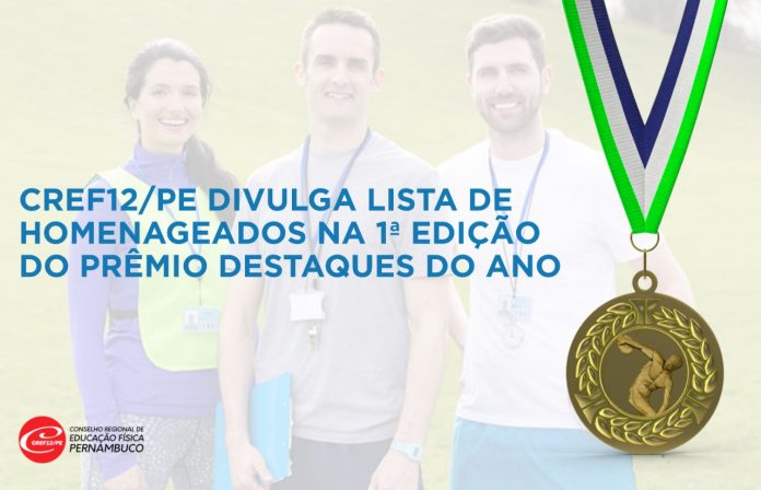 O Conselho Regional de Educação Física da 12ª Região/Pernambuco (CREF12/PE) divulga a lista de homenageados na Primeira Edição do Prêmio Destaques do Ano. A premiação contempla oito categorias e vai destacar os profissionais com habilitação em licenciatura e bacharelado em todo o Estado de Pernambuco, além de ter categorias dedicadas a Personalidade do Ano e ao veículo de comunicação de maior destaque na parceria com os Profissionais da Educação Física. A entrega dos troféus está programada para o primeiro trimestre de 2021.