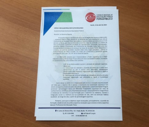 O Conselho Regional de Educação Física da 12ª Região/Pernambuco (CREF12/PE) – autarquia federal criada através da Lei 9696/98 que conta atualmente com 18 mil Profissionais de Educação Física registrados em todas as cidades pernambucanas e 2 mil pessoas jurídicas, que atua combatendo o exercício ilegal da profissão e na defesa da ética profissional, cumprindo atividades de representação, orientação, normatização, disciplina, defesa e fiscalização dos Profissionais de Educação Física, bem como das Pessoas Jurídicas prestadoras de serviços nas áreas de atividades físicas, desportivas e similares, em prol da sociedade, atuando ainda como órgão consultivo – enviou Ofício a todos os Deputados Federais e Senadores por Pernambuco mostrando grande preocupação com o Art. 74, § 3º, da Lei Geral do Esporte.