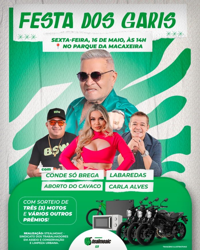 Em comemoração ao Dia do Gari, o Sindicato dos Trabalhadores em Empresas de Asseio e Conservação e Limpeza Urbana de Pernambuco – STEALMOAIC, promove nesta sexta-feira (16), “Festa dos Garis”. O evento acontece a partir das 14h, no Parque da Macaxeira, Zona Norte do Recife.