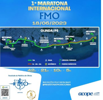 No próximo domingo (18), a cidade de Olinda vai sediar a primeira edição da Maratona Internacional da Marim dos Caetés, um evento esportivo que promete colocar a cidade no mapa das grandes provas. A maratona é promovida pela Faculdade de Medicina de Olinda (FMO) e conta com a realização técnica da Associação dos Corredores de Pernambuco (ACOPE).
