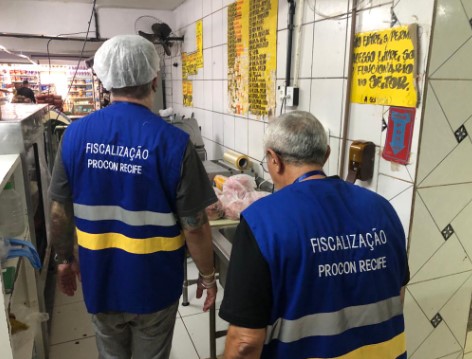 Equipes do Procon identificaram estabelecimento na Imbiribeira comercializando presunto e pernil suíno fora da validade. Orientação é observar o prazo de validade do produto e denunciar aos órgãos de defesa do consumidor para que seja apurada a eventual prática infrativa