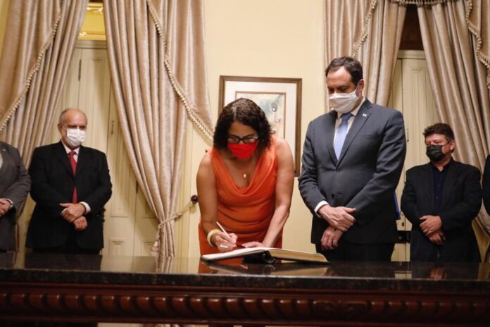 Em decorrência da viagem para Glasgow, na Escócia, o governador Paulo Câmara transmitiu o cargo, nesta quarta-feira (03.11), no Palácio do Campo das Princesas, à vice-governadora Luciana Santos, que ficará no posto até o próximo dia 11 de novembro. Durante esse período, Paulo Câmara participará da COP26, com o compromisso de ampliar a inserção dos chamados governos subnacionais no enfrentamento ao aquecimento global e no desenvolvimento sustentável, além de apresentar as ações estaduais voltadas para a preservação ambiental e firmar parcerias contra o desmatamento ilegal.
