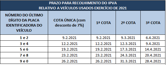 IPVA 2021: Prazo para pagamento começa a vencer na próxima semana, para veículos com placa final 1,2,3 e 4