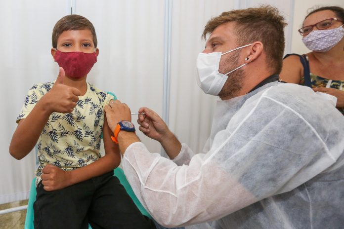 A vacinação de crianças contra o novo coronavírus no Jaboatão dos Guararapes é realizada de segunda a sexta-feira, das 8h30 às 17h, em quatro pontos fixos montados especificamente para esse público