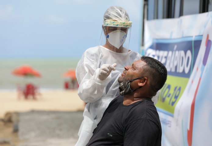 A Prefeitura do Jaboatão dos Guararapes deu início, nesta quarta-feira (25), a uma ação para aplicação em massa de testes rápidos contra a Covid-19 na população de todo o município. A primeira iniciativa foi montada na altura da Igrejinha de Piedade, com o objetivo de realizar os exames junto aos comerciantes que trabalham na orla da cidade, devido ao alto fluxo de turistas e banhistas que frequentam a faixa de areia. O exame é feito por meio de coleta de material biológico da nasofaringe (nariz e garganta) e o resultado é apresentado em cerca de 20 minutos.