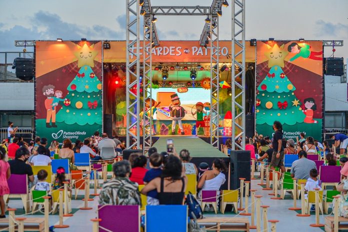 Ao ar livre, com distanciamento e seguindo os protocolos de proteção e higienização, o evento “Tardes no Patteo” recebe, até dezembro, diversas atrações natalinas para toda a família. Baile Mágico com o Papai Noel e os especiais de Natal de Frozen e Moana estarão na programação dos próximos finais de semana. As apresentações acontecem na cobertura do estacionamento do Shopping Patteo Olinda, com abertura dos portões às 15h30. A produção é da Libre Promo.