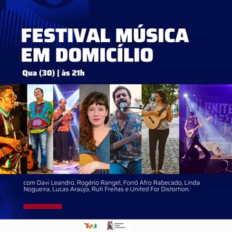Rock, choro, MPB e muito forró no arraiá do Festival Música em Domicílio prometem alegrar a noite de amanhã (30), às 21h. Em alusão ao ciclo junino, a mais nova edição do programa musical exibido pela TVU (canal 11.1) recebe nomes emergentes da cena pernambucana, destacando a importância de medidas de proteção contra o novo coronavírus. São eles: Davi Leandro, Rogério Rangel, Forró Afro Rabecado, Linda Nogueira, Lucas Araújo, Ruti Freitas e United For Distortion.