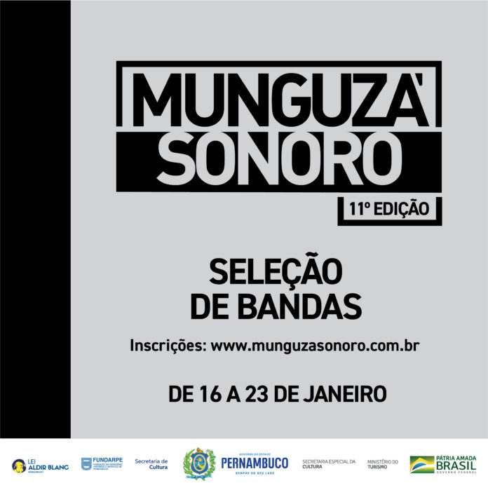 O festival de música Munguzá Sonoro está com inscrições abertas para a seleção de bandas que irão compor a 11ª edição do evento em 2022. As inscrições gratuitas seguem até 23 de janeiro através de formulário no link https://www.munguzasonoro.com.br/inscrições. O resultado final da seleção será divulgado no dia 31 de janeiro nas redes sociais do festival.