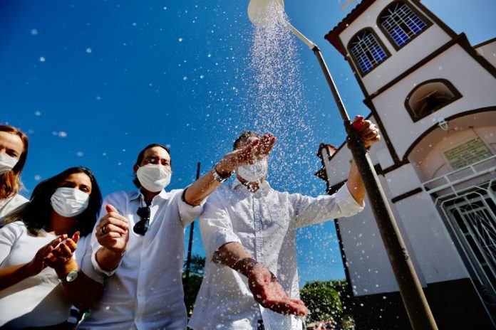 “Estamos em Santa Rosa, onde temos a oportunidade de inaugurar o sistema de abastecimento, uma demanda muito antiga. Eu vim aqui como candidato em 2014, e era o que a população pedia: água chegando nas casas. Hoje a gente tem a oportunidade de realizar esse sonho e ver pessoas felizes pela chegada da água. Na visita que eu fiz à casa de dona Moça, ouvi ela contando o sofrimento que era ter que, muitas vezes, levar água no balde por não ter o abastecimento regular”, contou Paulo Câmara.