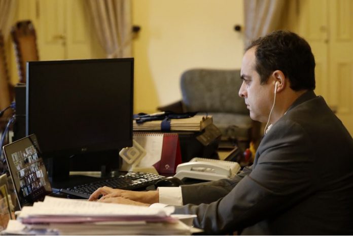 O governador Paulo Câmara esteve reunido por videoconferência, nesta segunda-feira (08.03), com empresários do Grupo Atitude para avaliar e discutir o cenário da pandemia da Covid-19 em Pernambuco. No domingo, ele também participou de reunião virtual com os presidentes dos poderes constituídos do Estado, com o mesmo objetivo.