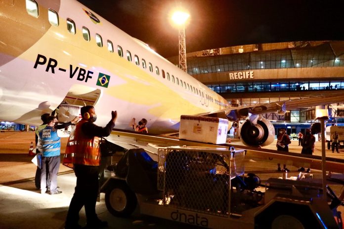 Pernambuco recebeu, na madrugada deste domingo (24.01), as primeiras doses da vacina da farmacêutica AstraZeneca e da Universidade de Oxford, desenvolvida em parceria com a Fundação Oswaldo Cruz (Fiocruz) e produzidas pelo Instituto Serum, na Índia. As 84 mil doses destinadas ao Estado desembarcaram no Aeroporto Internacional do Recife/Guararapes – Gilberto Freyre às 00h30, em voo operado pela companhia aérea GOL, que partiu do aeroporto do Galeão, no Rio de Janeiro.