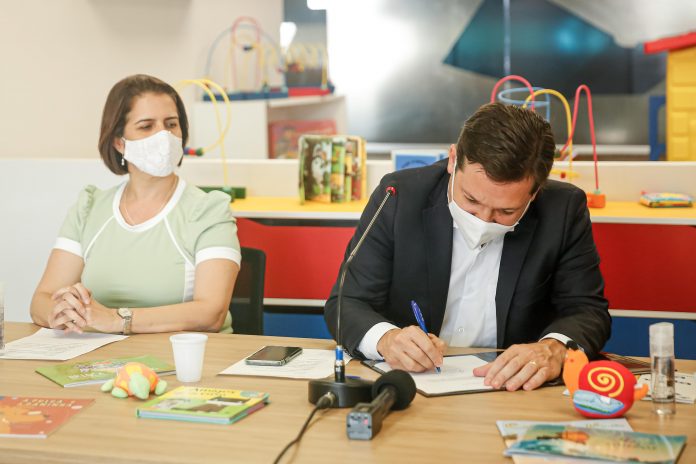 “Acabei de sancionar a Lei do Plano Municipal da Primeira Infância que estabelece um conjunto de políticas públicas voltadas para a Primeira Infância da Cidade. mas que foi um plano construído com escuta da sociedade. O Comdica concluiu a escuta com mais de 40 mil crianças que participaram e também com mais de duas mil contribuições em meio digital para elaboração deste que é um plano da toda a cidade. E a gente assinou aqui, na Bebeteca do Geraldão, que também estamos inaugurando hoje. A gente já construiu quatro grandes bibliotecas nos Compaz da cidade, e neles a gente também têm espaços voltados para crianças da primeira infância. E aqui no Geraldão, uma biblioteca específica para elas. A primeira Bebeteca da cidade”, disse o prefeito Geraldo Julio.