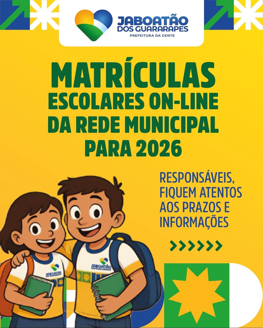 A Prefeitura do Jaboatão dos Guararapes, por meio da Secretaria Municipal de Educação, divulgou o calendário para a reserva de matrícula de estudantes novatos que desejam ingressar na rede municipal em 2026. A primeira etapa do processo começa nesta segunda-feira (20) e vai até quarta-feira (22).