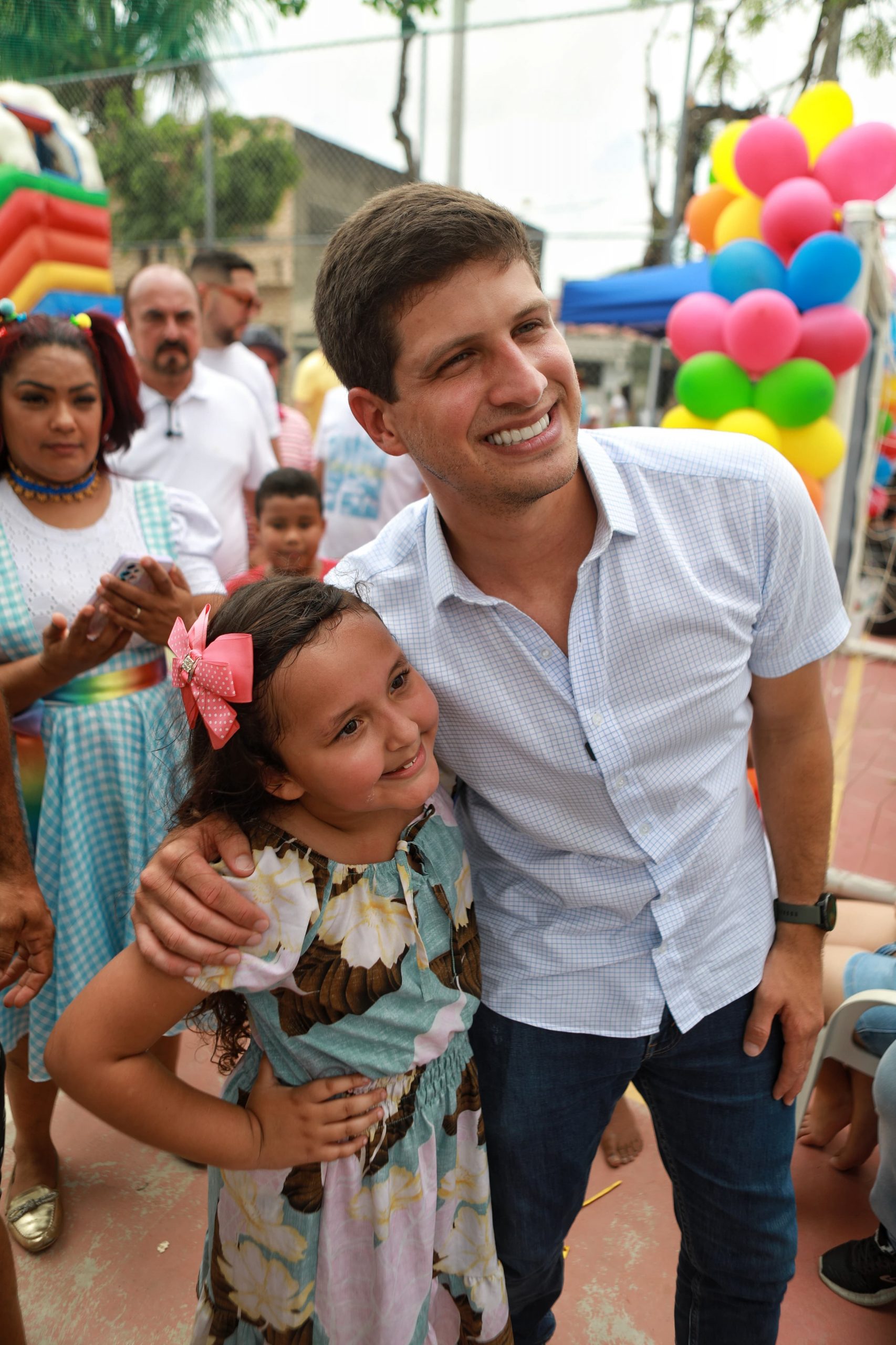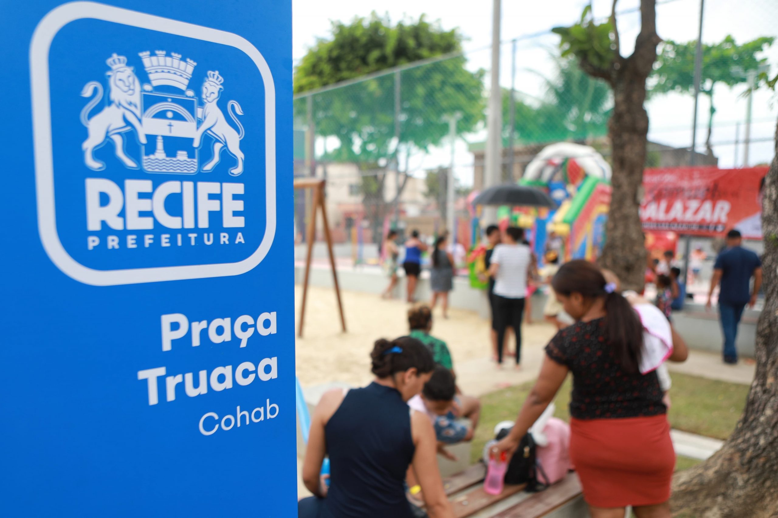 “A gente está inaugurando hoje a requalificação da Praça da Truaca, na UR-3. Foram mais de R$ 500 mil da Prefeitura do Recife. Aqui há dois colégios no entorno e está tudo pronto: quadra requalificada, novo parque, nova área de convivência e iluminação reforçada. E quem está fazendo a inauguração é a criançada”, afirmou João Campos.