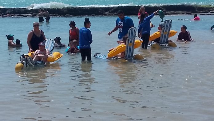 Dida Duque, chefe de Divisão da Pessoa com Deficiência do Recife e coordenadora do Projeto Praia sem Barreiras, ressalta que se trata de uma ação inclusiva, pois possibilita um momento de lazer às pessoas com mobilidade reduzida, e funciona nos feriados, sextas, sábados e domingos. “Hoje, o público-alvo foi a criançada, em virtude do seu dia. Mas quem veio neste dia, a exemplo de pessoas idosas e com mobilidade reduzida, também tomaram banho de mar assistido pela nossa equipe”, explicou Dida.