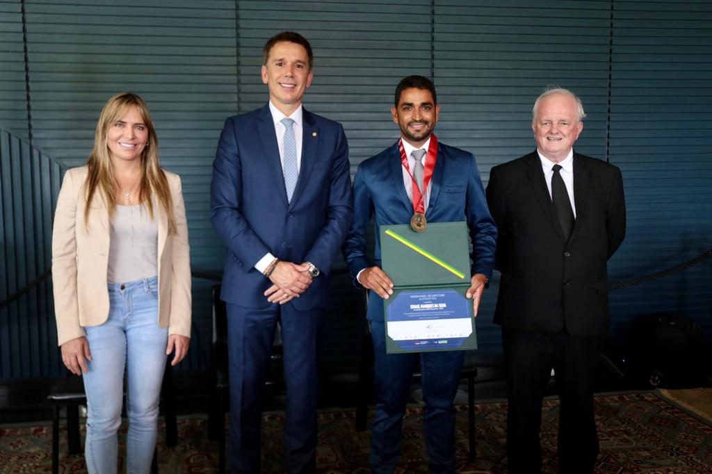 O Presidente do Conselho Regional de Educação Física da 12ª Região/ Pernambuco (CREF12/PE), Lúcio Beltrão (CREF 003574-G/PE) e os Profissionais de Educação Física Ismael Marques (CREF 007121-G/PE) e Yane Marques (CREF 006457- G/PE), receberam nesta terça-feira (14), a Honraria Manoel José Gomes Tubino, a mais alta condecoração do Congresso Nacional voltada à Educação Física.