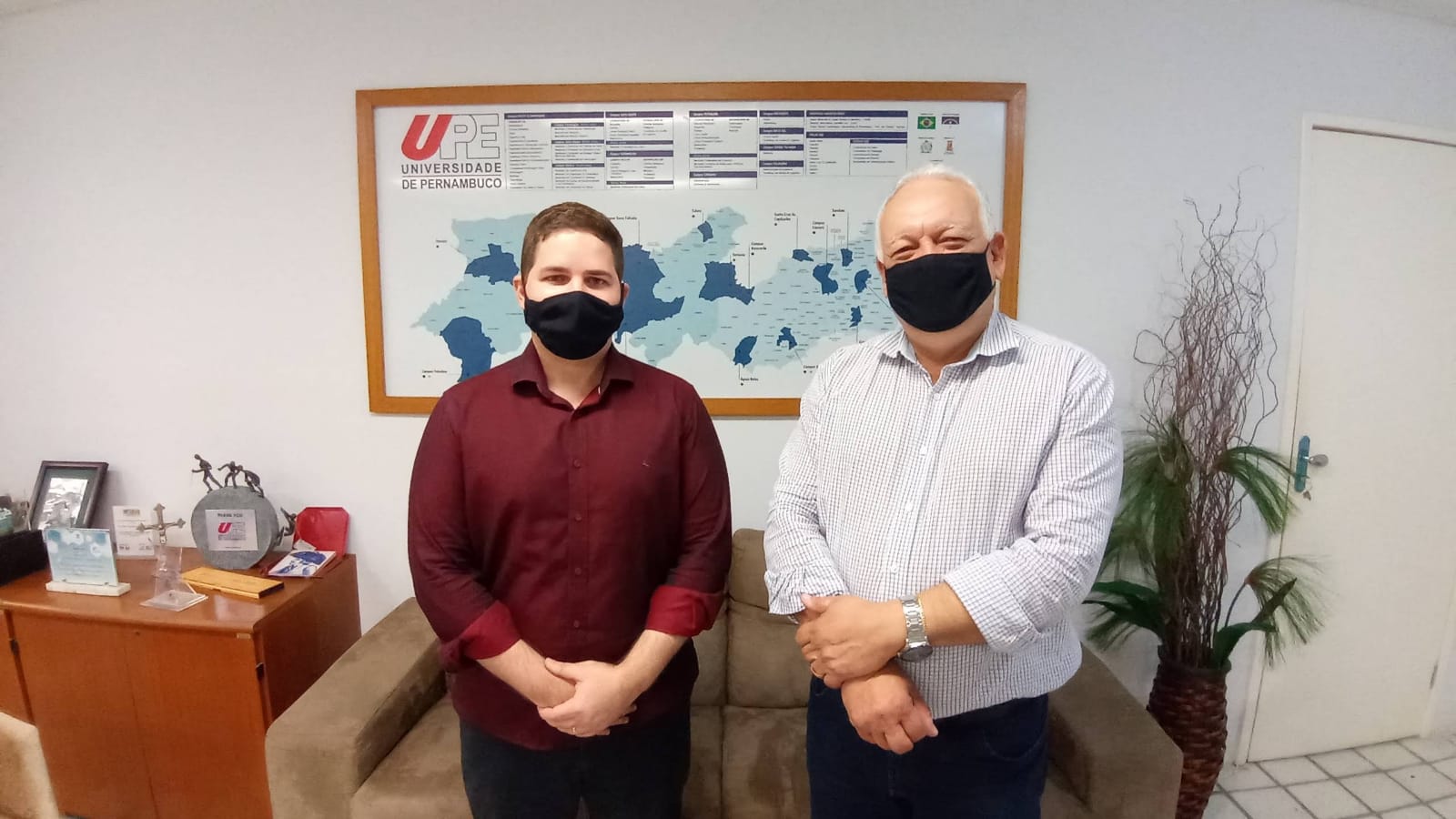 Parceria, projetos em comum e pautas ligadas ao ensino da Educação Física nortearam a reunião realizada na última sexta-feira (14), entre o Professor Lúcio Beltrão (CREF 003574-G/PE), presidente do Conselho Regional de Educação Física da 12ª Região/Pernambuco (CREF12/PE) e o Reitor da Universidade de Pernambuco (UPE), Dr. Pedro Falcão, que também coordena o Consórcio Pernambuco Universitas (UFPE, UPE, UFRPE, Unicap e Univasf).