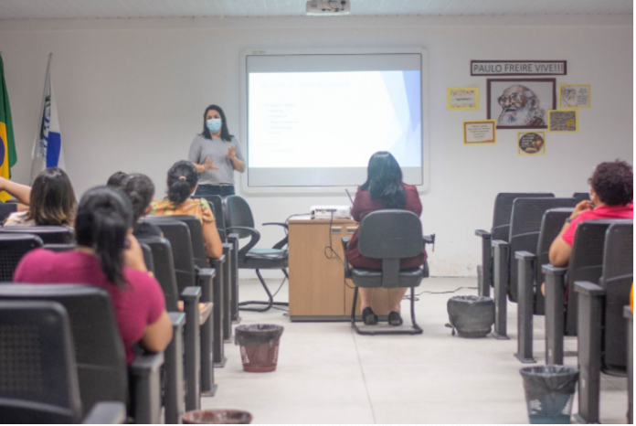 A formação contou com orientações pedagógicas da professora e pedagoga Risalba Vasconcelos. Ela explicou sobre as maneiras de adaptação de material de ensino, como estabelecer a comunicação com essa criança, forma de acolhimento e escuta das famílias.