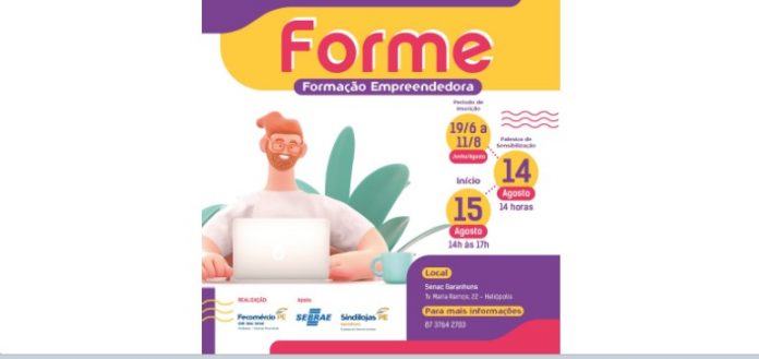 O Instituto Fecomércio-PE abriu inscrições para curso gratuito de empreendedorismo em Garanhuns. Com foco em jovens e adultos moradores do município que desejam empreender, a iniciativa faz parte do Programa de Formação Empreendedora (Forme) e possui apoio do Sebrae/PE na realização. O curso, que conta com 30 vagas, terá início no dia 15 de agosto. Os interessados podem se inscrever até o dia 11/08 pelo telefone (87) 3764-2703 ou se dirigindo ao Senac Garanhuns, local que será realizada a formação,  no endereço: Travessa Maria Ramos, 22, no bairro de Heliópolis, portando CPF, RG e comprovante de residência.