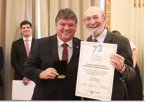 O deputado Sileno Guedes (PSB) recebeu nesta terça (13), a Medalha de Direitos Humanos Desembargador Nildo Nery dos Santos, do Tribunal de Justiça de Pernambuco (TJPE). A outorga, que é referente a 2021 e havia sido adiada em razão da pandemia, é destinada a personalidades que militam na defesa da dignidade da pessoa humana. Sileno foi agraciado pelo trabalho como secretário estadual de Desenvolvimento Social, Criança e Juventude, cargo que ocupou entre 2019 e 2022.
