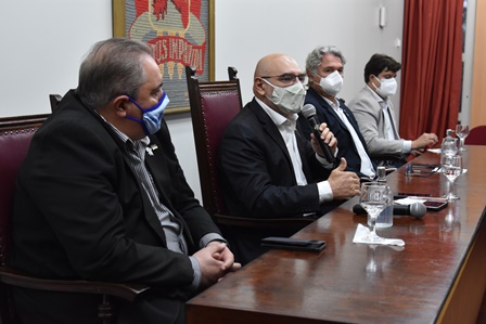 Apresentar as estratégias que estão sendo desenvolvidas pela Universidade Federal de Pernambuco (UFPE) para a criação de uma vacina contra a Covid-19. Este foi o objetivo de reunião ocorrida na tarde de terça-feira (25), no Auditório João Alfredo, na Reitoria, que reuniu o reitor Alfredo Gomes, o vice-reitor Moacyr Araújo, o secretário Estadual de Saúde de Pernambuco, André Longo, o secretário de Ciência, Tecnologia e Inovação do Estado (Secti), Lucas Ramos, e pesquisadores da UFPE.