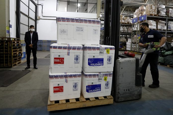 BALANÇO – Com essa nova remessa, Pernambuco totaliza 577.560 vacinas da Sinovac/Butantan, para ambas as doses, e 166 mil da Astrazeneca/Oxford/Fiocruz, apenas para a primeira – o Ministério da Saúde informou que enviará a segunda dose, que deve ser feita três meses após a primeira, em tempo oportuno.