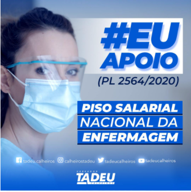 O vereador do Recife, Tadeu Calheiros (PODEMOS), segue na luta pelas categorias da saúde. O parlamentar usou as redes sociais para declarar seu apoio ao Projeto de Lei 2564 / 2020. A proposição, de autoria do senador Fabiano Contarato (REDE-ES), versa sobre a instituição de um piso salarial para área da enfermagem em todo território nacional.