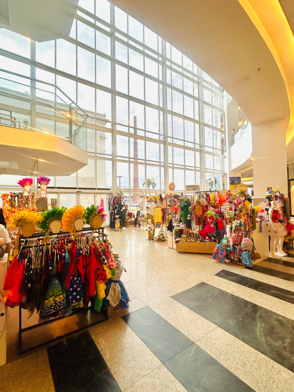 Localizada no Piso L1, a Vitrine Empreendedora vai até o dia 18 de fevereiro e traz um verdadeiro show de cores e originalidade nas fantasias e acessórios artesanais que unem qualidade, brilho e muita criatividade, que garantem estilo e originalidade.