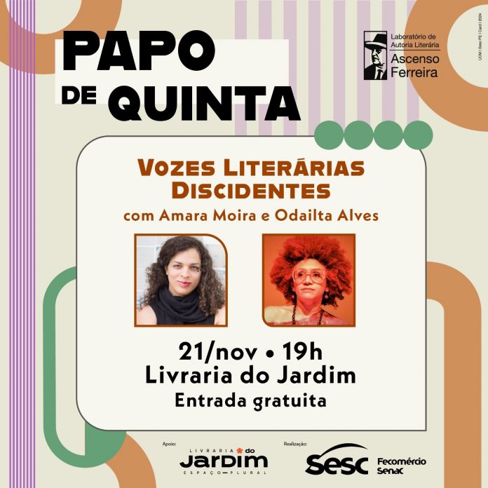 No próximo dia 21 de novembro, às 19h, a Livraria do Jardim, em parceria com o Sesc, realiza mais uma edição do Papo de Quinta. O evento desta semana terá como tema “Vozes Literárias Dissidentes”, destacando narrativas contemporâneas que questionam padrões e ampliam perspectivas.